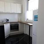 Eine Küche ist mit einem Kühlschrank und einem Herd zur Selbstversorgung ausgestattet. Sie können zum Flughafen Augsburg in 20 Autominuten gelangen.